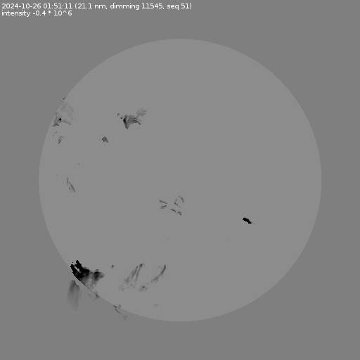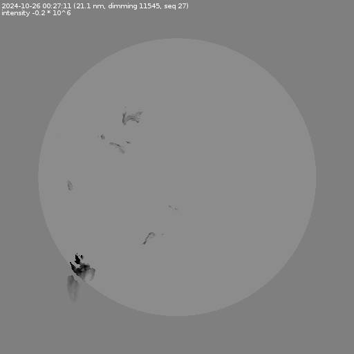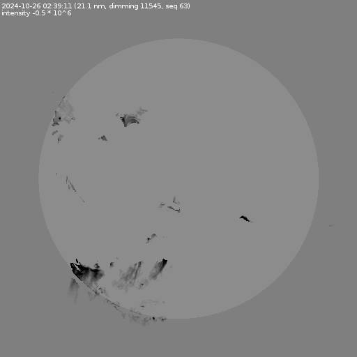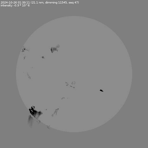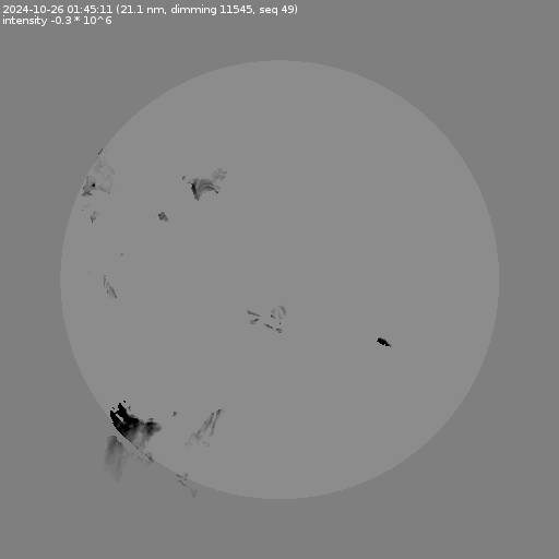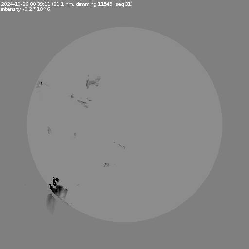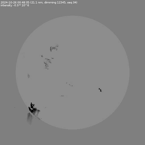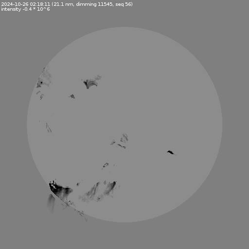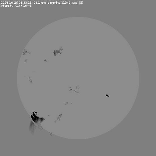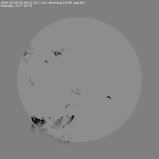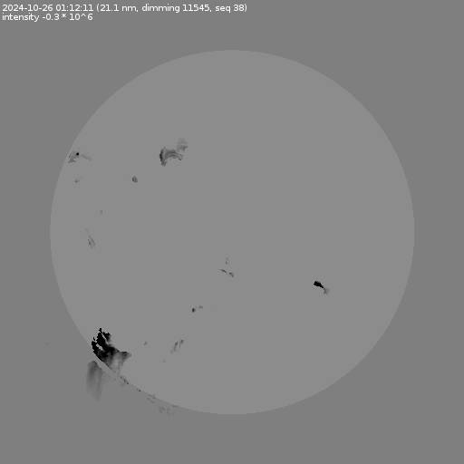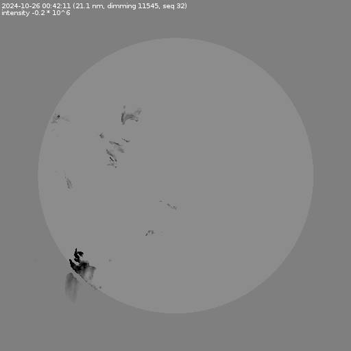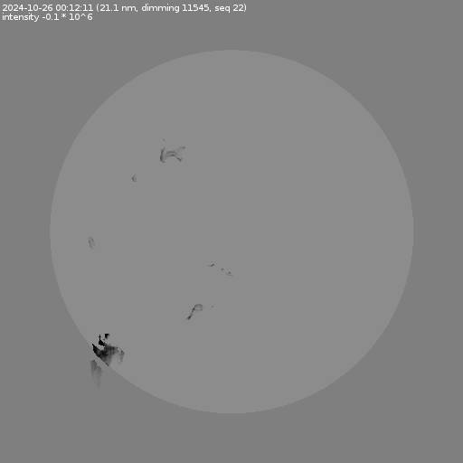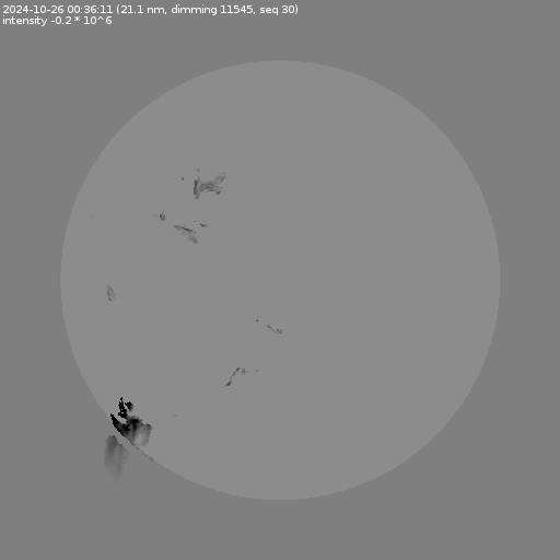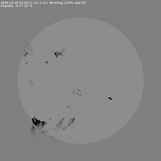 The total area and intensity of the dimming is shown in dark . All images are differentially derotated to the time of the first image.