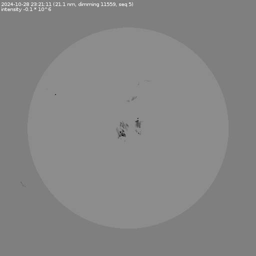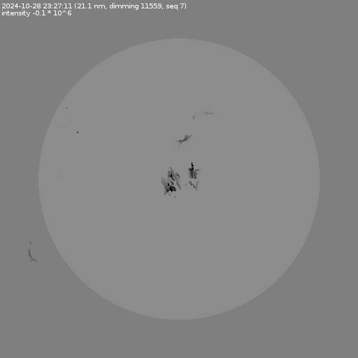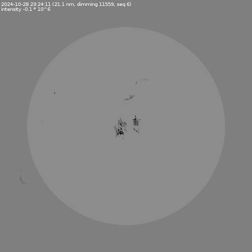 The total area and intensity of the dimming is shown in dark . All images are differentially derotated to the time of the first image.