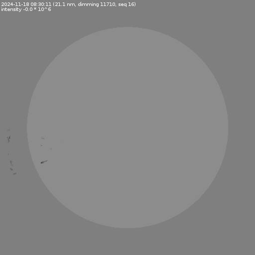 The total area and intensity of the dimming is shown in dark . All images are differentially derotated to the time of the first image.
