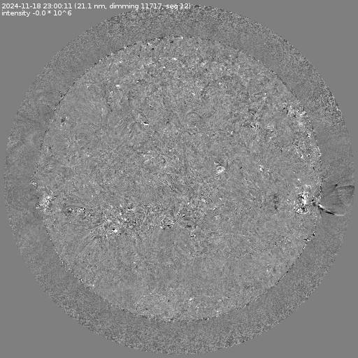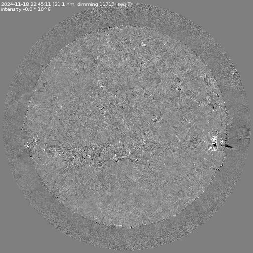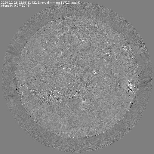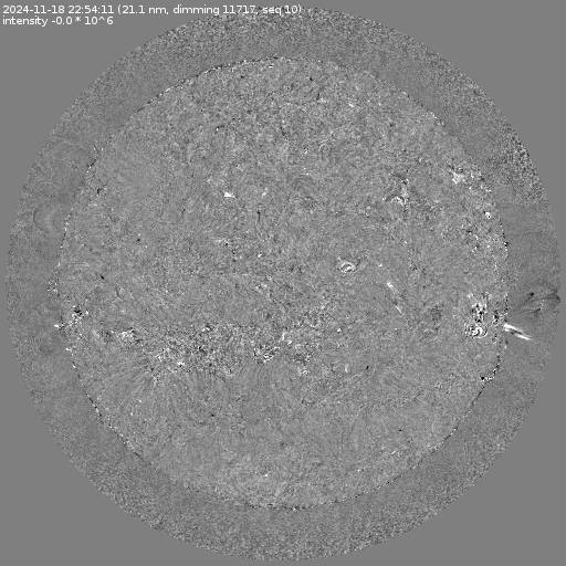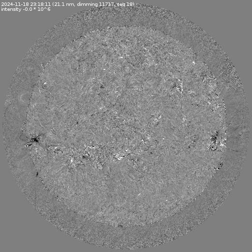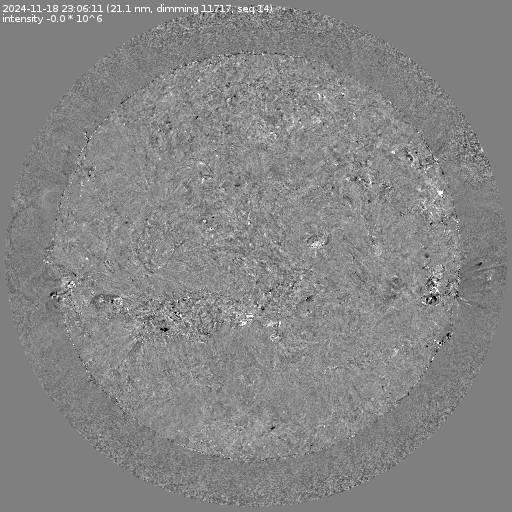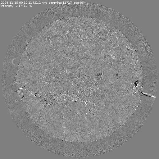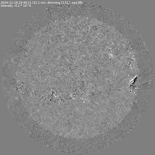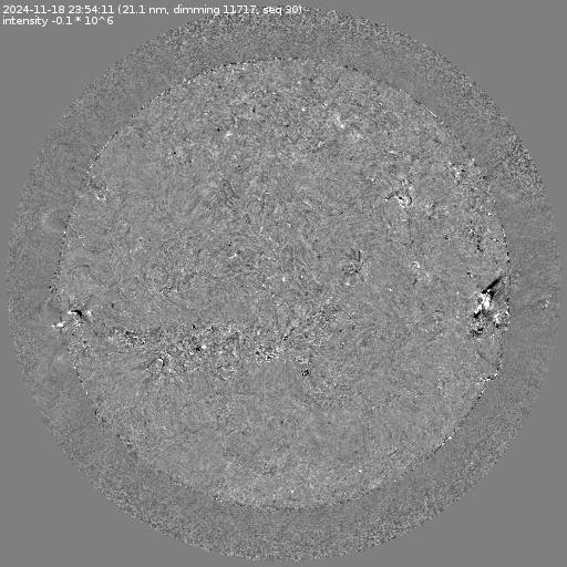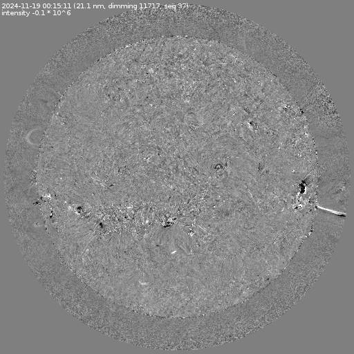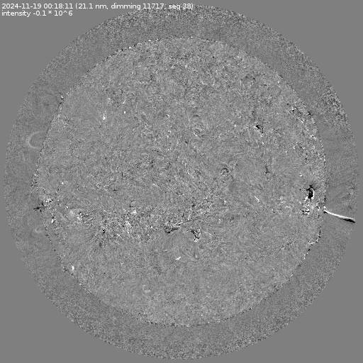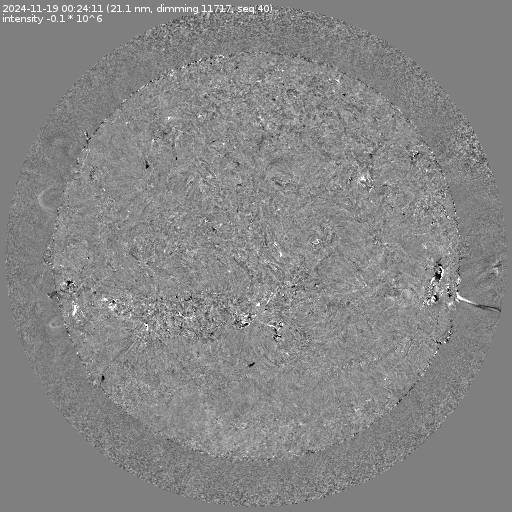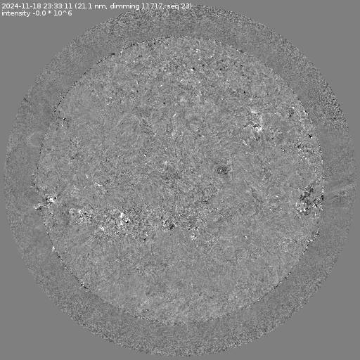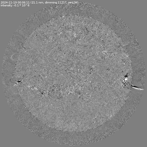 Running difference images divided by the pre-event image intensity. All images are differentially derotated to the time of the first image.
