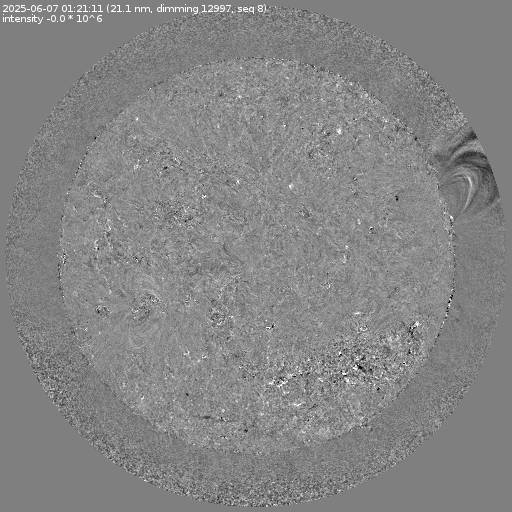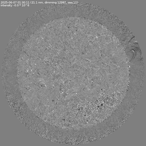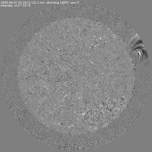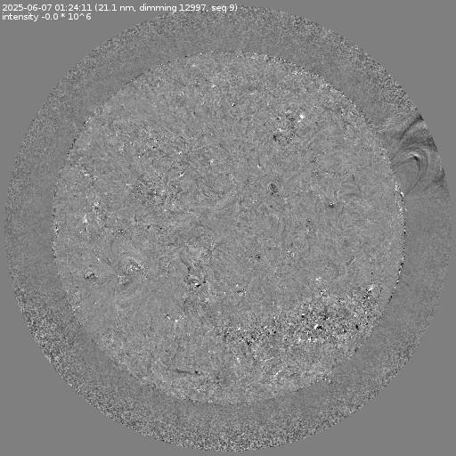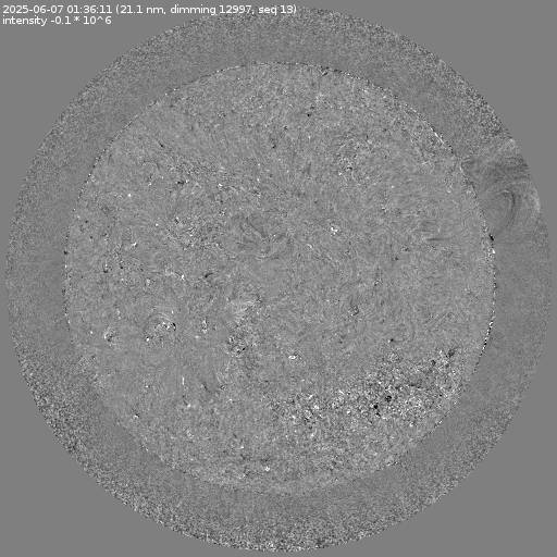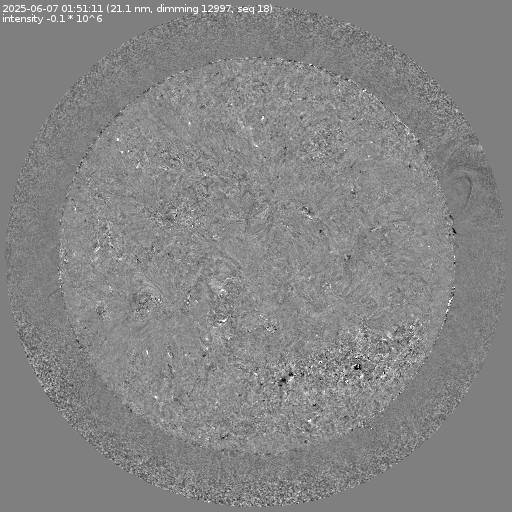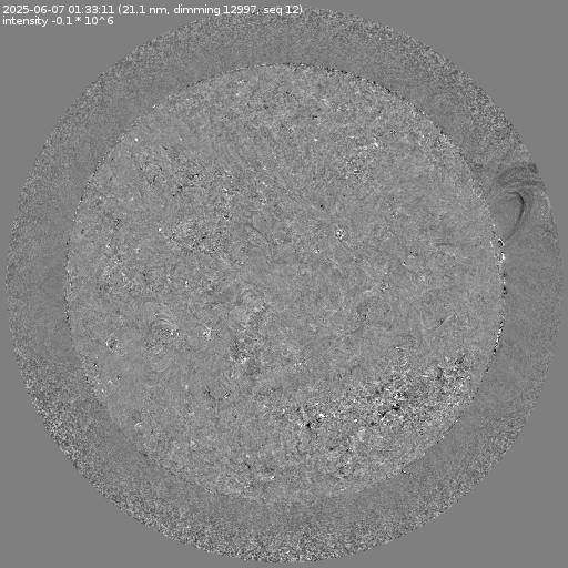 Running difference images divided by the pre-event image intensity. All images are differentially derotated to the time of the first image.