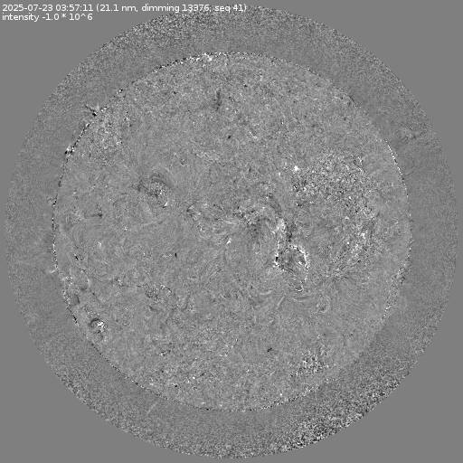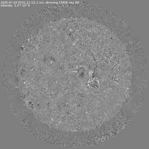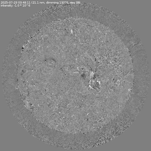 Running difference images divided by the pre-event image intensity. All images are differentially derotated to the time of the first image.