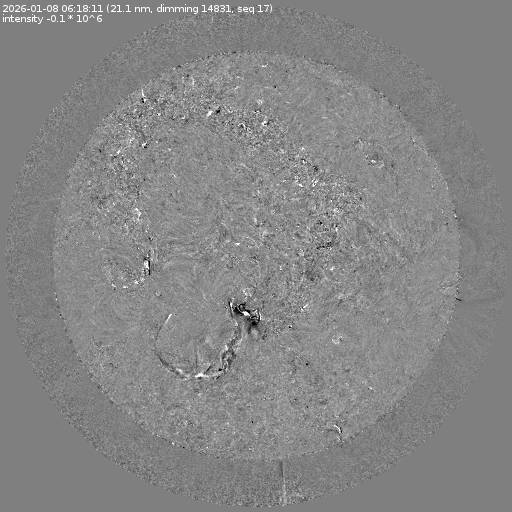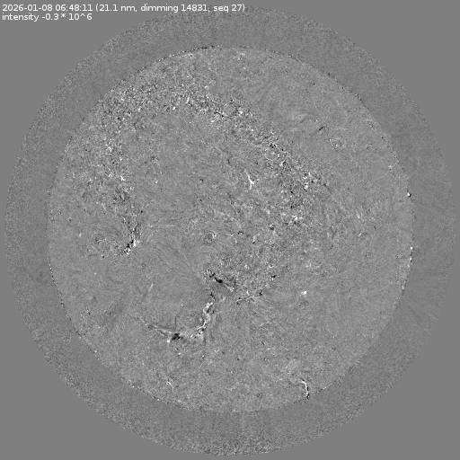 Running difference images divided by the pre-event image intensity. All images are differentially derotated to the time of the first image.