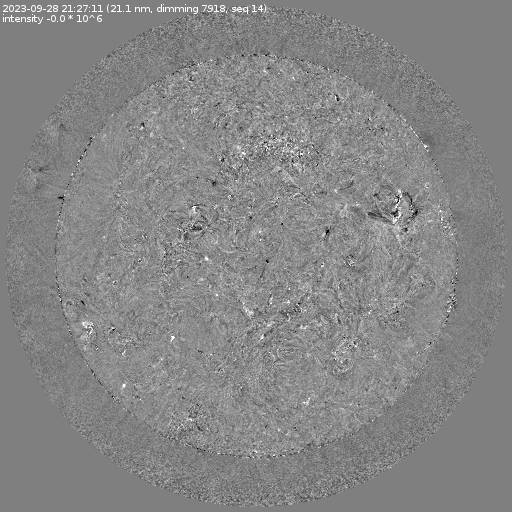 Running difference images divided by the pre-event image intensity. All images are differentially derotated to the time of the first image.